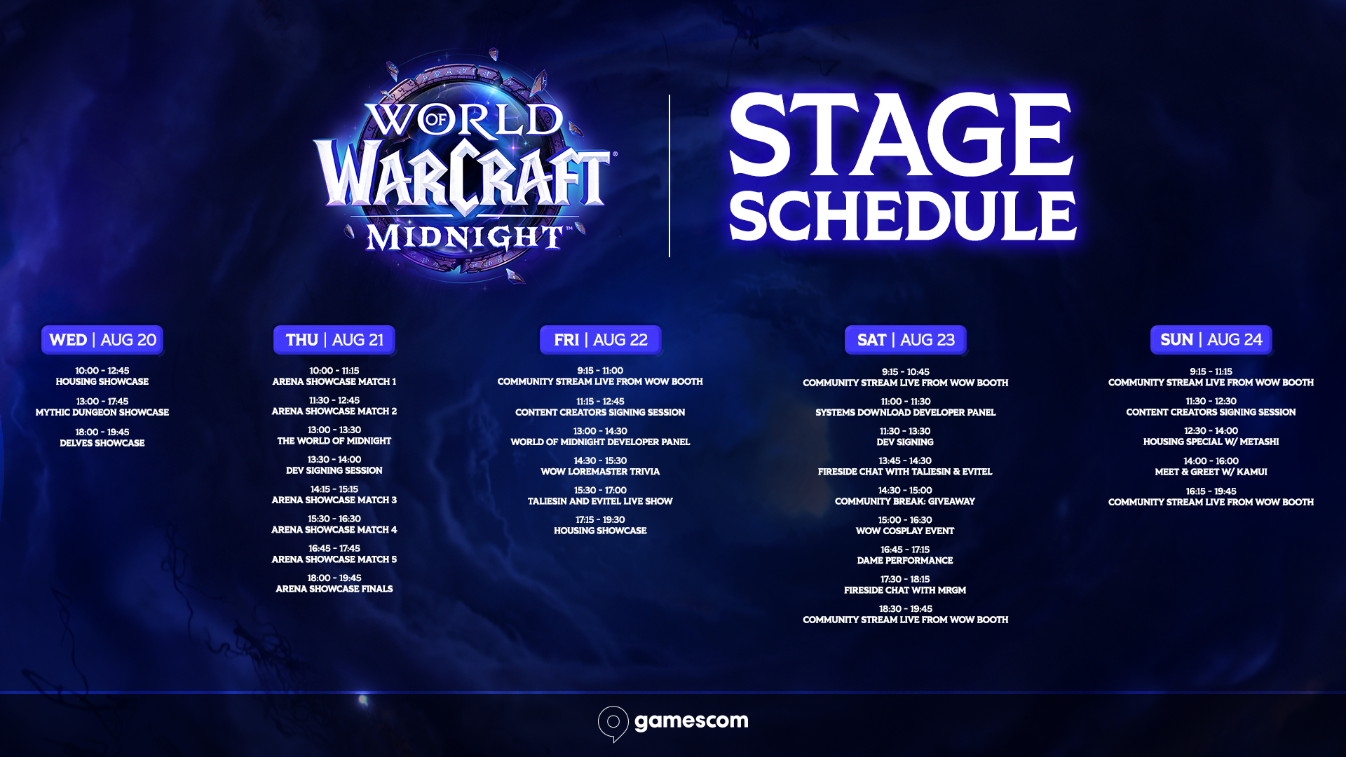 Bezoek ons in hal 8, kijk naar de Midnight Expansion Reveal en beleef een week lang de spanning op het Community Stage. Azeroth wacht op je, tot ziens op gamescom!