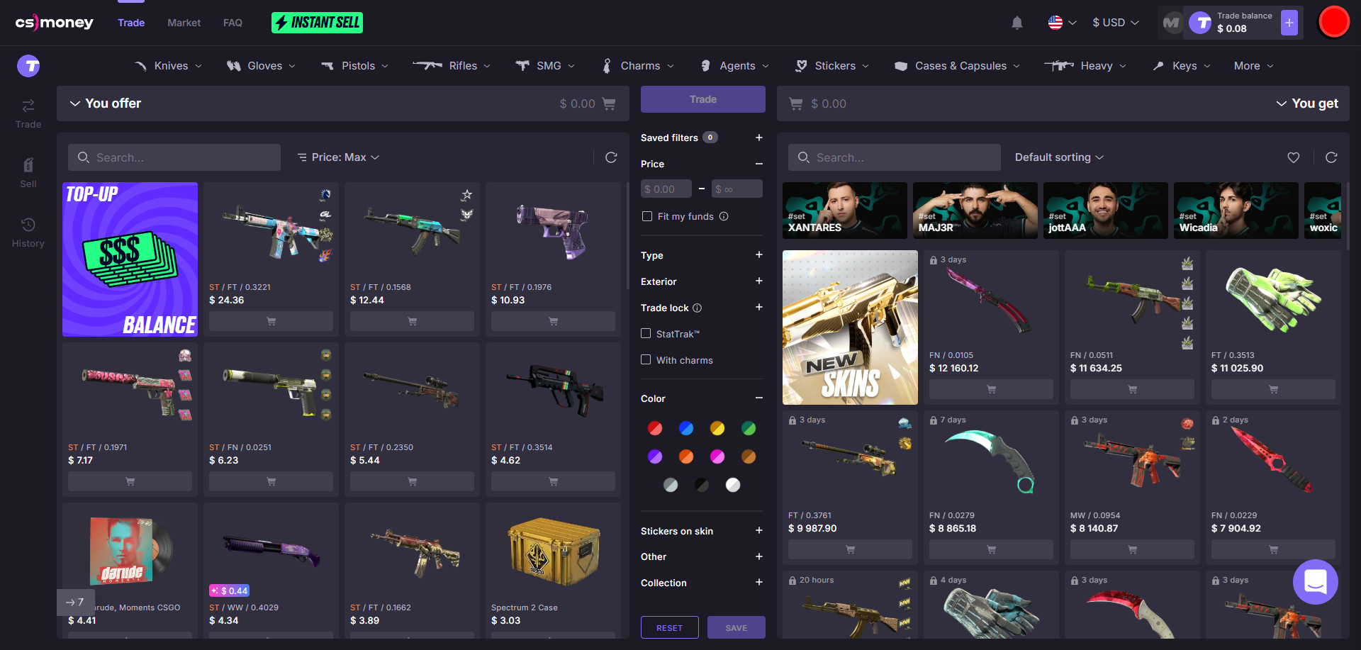 When you think about websites that fit all these factors, only few pass this test. One of them is CS.MONEY. It has a successful history since 2016, its TrustPilot score is 4.7/5, and its customer support is one of the best on the market. A reliable platform with fast deals and a clear interface is exactly what’s needed to trade CS2 skins safely.