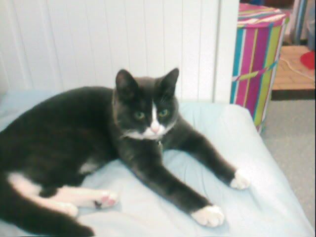 [img]http://img211.imageshack.us/img211/3932/dsc00003ug9.jpg[/img] mijn kat, had maar 1 oog meer (gevonden toen ze klein was, was helemaal uitgehongerd en door niesziekte is met operatie oog moeten weggehaald worden, en ze kon door de ziekte ook niet meer miauwen) maar ze is al paar weken weg dus vrees dat ze ergens dood is