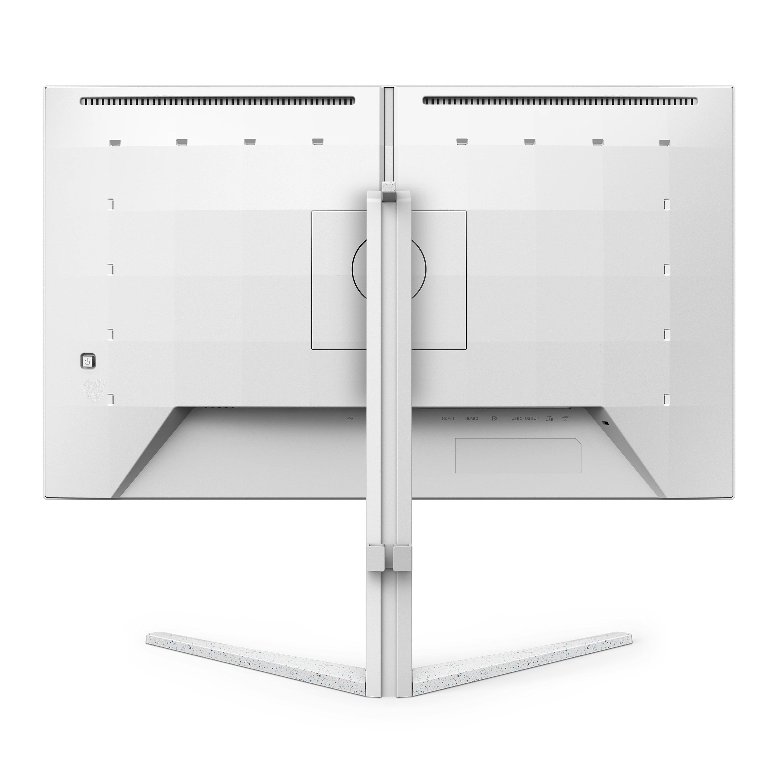 Qua design is het scherm misschien een opvallende verschijning. De voet bestaat uit een witte poot met poten die uitrekken richting de zijkanten en zich naar voren toe bewegen. De blauwkleurige vlekken op het mat witte plastic oogt degelijk, maar moet je wel liggen. Het wit oogt een klein beetje goedkoop aan, en is op het scherm verder mat van kleur. De bezels zijn dun aan de zijkanten, en zijn enkel aan de onderkant wat dikker, waarmee je vooral veel scherm hebt en weinig zijkant. De voet oogt subtiel dun aan, maar is verder wel stabiel en het scherm voelt ook relatief zwaar aan met een dikke 6.5 kilogram aan gewicht. Je kunt het scherm 90 graden draaien en zowel verticaal als in de diepte verstellen zodat het qua hoogte en diepte perfect matcht met je zithoogte. Het wit moet je dus liggen zoals gezegd, en heeft niet mijn persoonlijke voorkeur, maar de wit meegeleverde kabels (displayport, HDMI, USB-C en voeding) passen in ieder geval wel bij elkaar qua kleurstelling. De achterkant kent een Ambiglow-feature, ook wel de Ambilight-achtige feature, welke deels hetzelfde werkt als de TV’s die we kennen. De lichtmodi kunnen ingesteld worden op ‘video volgen’, een kleurwave, sterrennacht en een statische modus, waarbij bepaalde snelheden en kleuren ingesteld kunnen worden, maar ik kreeg hetgeen niet aan de praat om de kleuren van mijn scherm te volgen zoals de TV’s kunnen. Na wat sleutelen met de software en de monitor zelf, werkte het wel een stuk beter, maar zo out-of-the-box als op TV is het helaas niet helemaal. Het zijn daarnaast redelijk statische bewerkingsmodi waarin de led’s aan de achterkant aangestuurd kunnen worden, al blijft het natuurlijk wel vet als er een muur achter de monitor staat waar de lichtjes tegenaan kunnen weerkaatsen. Qua stroomverbruik gebruikt de monitor tot 65 Watt, wat op zich vrij normaal is, en uiteraard onder dat van een TV-scherm ligt (wat vaak rond de 100 watt ligt).