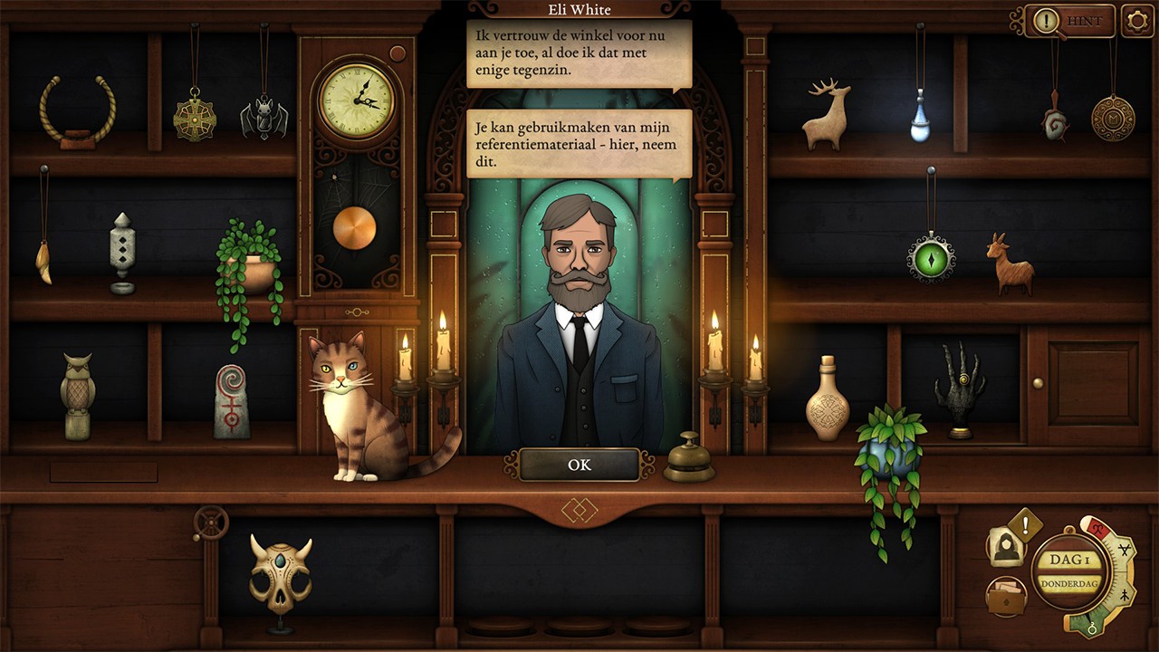 Als je Strange Horticulture hebt gespeeld, dan zal Strange Antiquities weinig verrassingen bieden. De basis is hetzelfde: je runt een klein winkeltje in Undermere en voorziet de lokale bevolking van de juiste objecten. Alleen staan er dit keer geen planten, maar een bonte verzameling vreemde en occulte artefacten in de schappen. En dat bevalt me eigenlijk beter. Een antiekzaak vol mysterieuze voorwerpen spreekt meteen tot de verbeelding. Bovendien is het makkelijker in te schatten wat een dolk met een roodgloeiende steen kan doen dan een willekeurige groene stengel met blauwe bloemblaadjes.