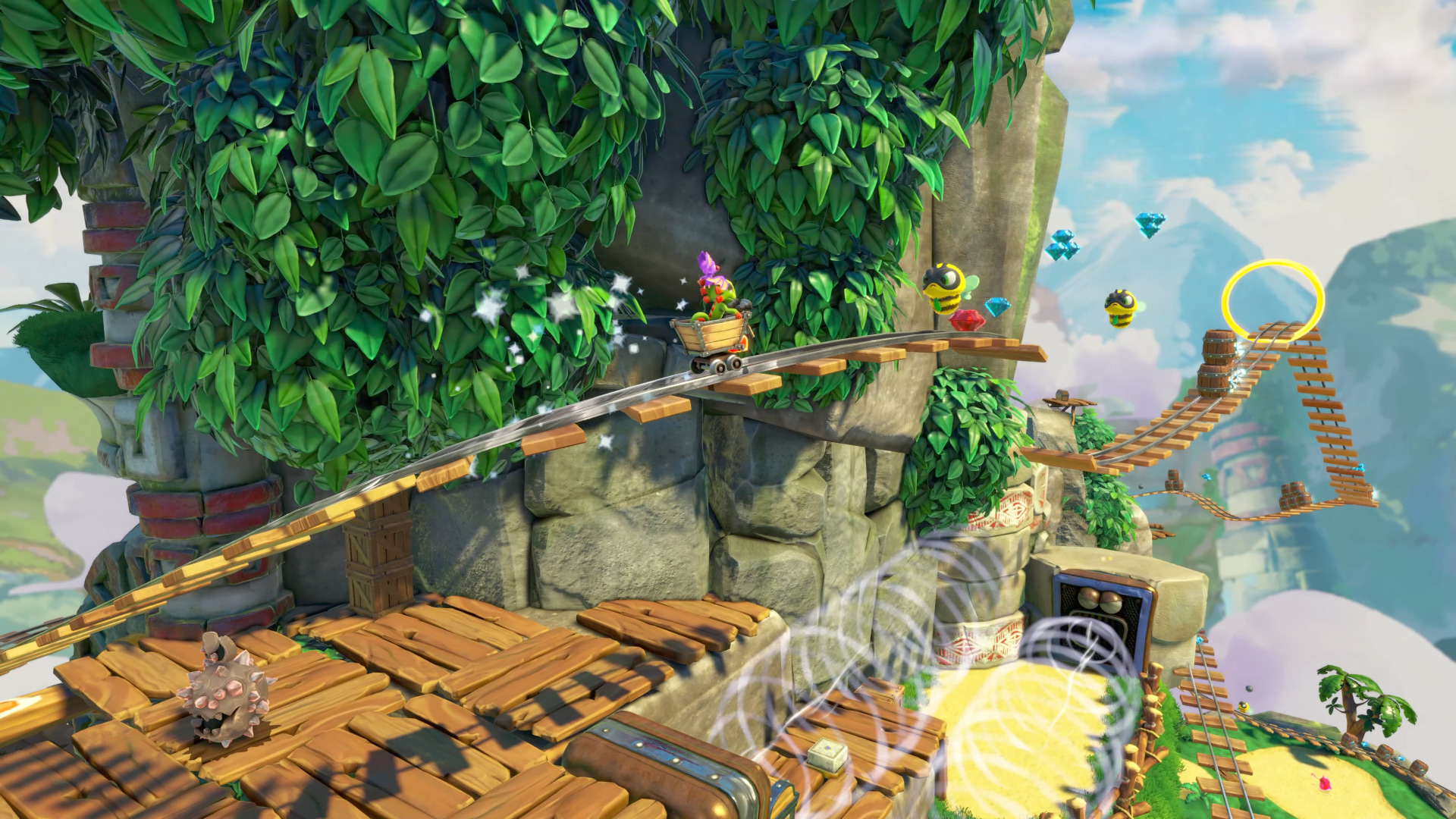 Qua gameplay is Yooka-Replaylee een heerlijke terugkeer naar de platformgames van eind jaren ’90. Denk aan Spyro the Dragon en uiteraard Banjo-Kazooie. Je springt, rent, rolt en vliegt door interessante werelden vol objecten die je kunt verzamelen. De game zit dan ook bomvol collectibles. Er zijn meer dan 300 Pagies, 750 veren, 40 puzzelstukken, 5 Mollycools en een handvol andere verzamelobjecten. Als je van verzamelen houdt, zit je hier goed. Elke hoek van elk level verbergt wel iets.